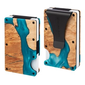 Cognac Brown Leather RFID Card Holder - 4 Card Slots - Note Section - Slim Wallet