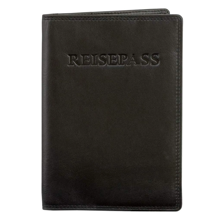 Passport holder with RFID BLOCK feature which protects IDentity against unauthorized reading. Passport cover is made of black genuine leather called Picasso. External pocket where boarding pass or contactless cards can be stored. Dimensions of this passport cover fits German biometric passports. Travel safe with SMART RFID BLOCK reisepass passport cover.