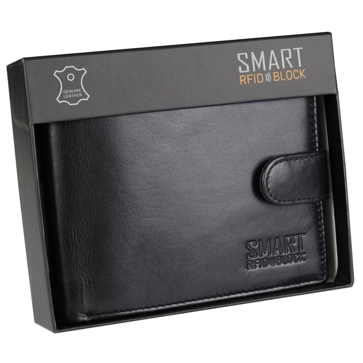 This is a classic genuine leather billfold wallet that folds open to reveal double flap with plenty of storage to keep all your credit, debit or ID cards, banknotes, coins and more, benefiting from being secured with snap button closure.