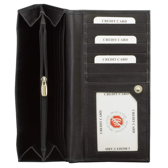 - 12 Card Slots | 2 Zipped Coin Pockets | ID Window | Leather | RFID Protected