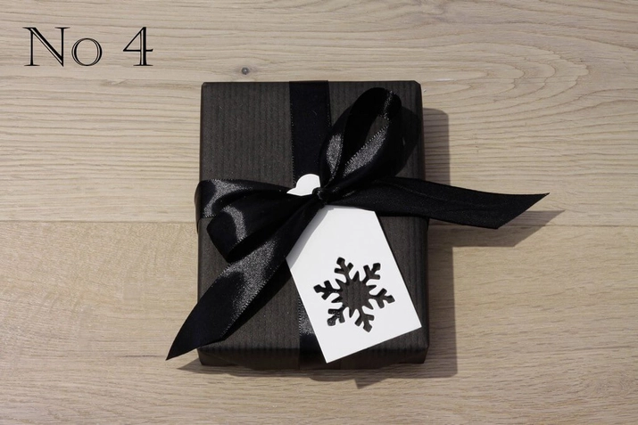 Black Kraft Paper, Black Satin Ribbon and White Gift Tag with Snowflake