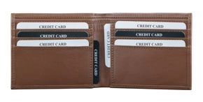 Cognac Brown Leather RFID Card Holder - 4 Card Slots - Note Section - Slim Wallet