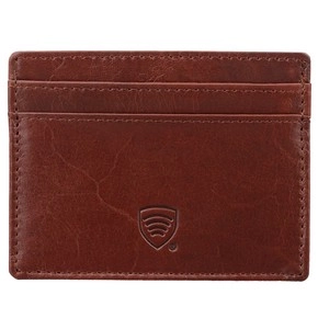 Cognac Brown Leather RFID Card Holder - 4 Card Slots - Note Section - Slim Wallet