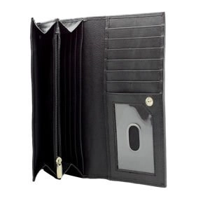 Black Leather RFID Wallet for 14 Cards and ID – Single Billfold with Flap
